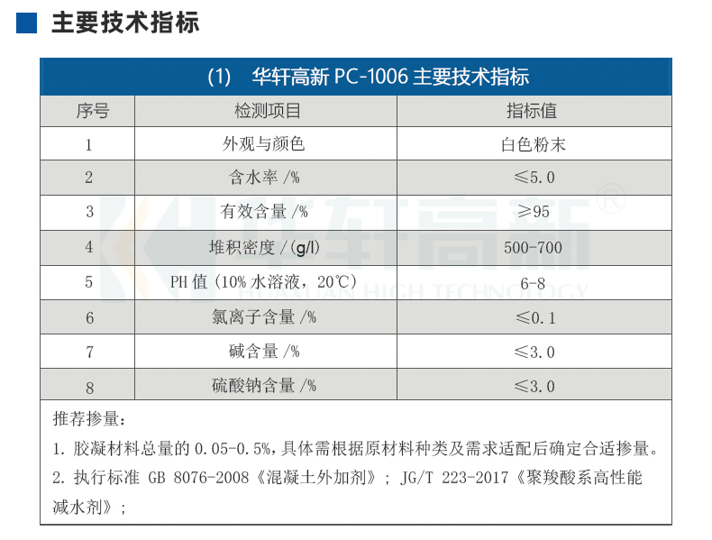 名稱:粉體聚羧酸高性能減水劑 品牌:華軒高新 型號:PC-1006